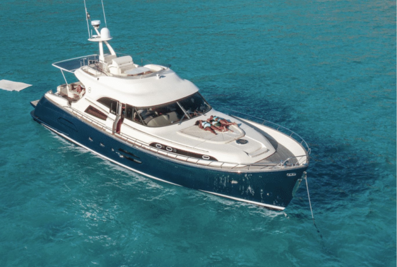 The Princess V65 is a 65 foot power boat combining dynamic performance and seakeeping of an offshore powerboat with the elegant and spacious accommodation of a larger vessel. Maximum 14 pax.